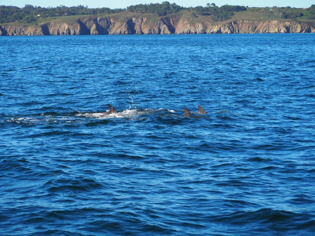 Une fois dans la Ria de Bentazos un groupe des grands dauphins est venu jouer avec nous pour un bon moment, le temps de les photographes…sachant que nous naviguons qu’ à 3 Nœuds.
