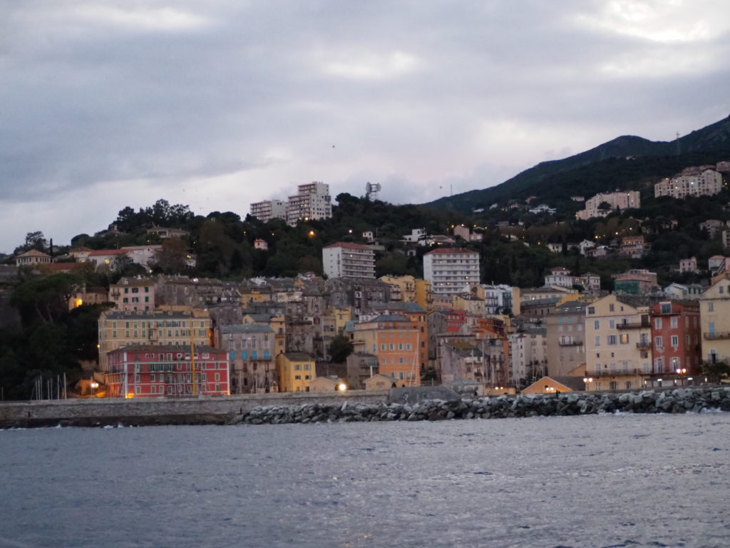 El lunes 12 luego de esta mala noche, contactamos con el puerto para refugiarnos allí y esperar a que Gus y Valerie, que lleguen desde Ajaccio, para pasar una semana con nosotros. Desafortunadamente, tardaran 24 horas en llegar a Saint Florent. Entonces decidimos ir a Bastia a recogerlos. Nos damos cita a las 19 horas en el viejo puerto. Este plan es aun mejor, porque la noche en Saint Florent nos habría costado 90 € (bastante caro para temporada baja). Son las 12:30 p.m. tomamos el rumbo bordeando la costa este de la isla, pasando por Cap Corse. Con las condiciones del viento y del mar que tenemos y que todavía se prevén para toda la semana, estaremos más seguros en la costa este. Todavía nos quedan 40 millas. A las 16.30 horas contactamos con la capitanía del puerto de Bastia para informarles de nuestra llegada al puerto donde tomaremos el amarre a las 19 horas precisamente.